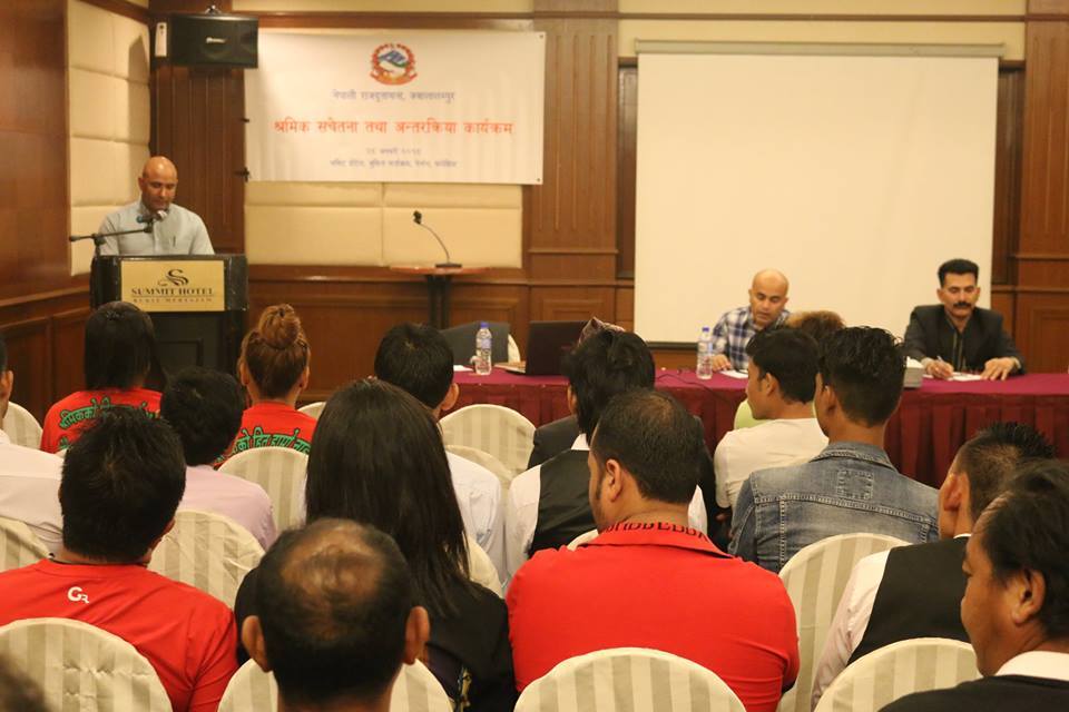 आइतबार गरिएको कार्यक्रम दुताबासका उपनियोग प्रमुख कुमार राज खरेलले कामदारले अपनाउनुपर्ने सावधानी, स्वास्थ्य सम्बन्धी सचेतना, अनुशासन तथा जिवनशैलीका बारेमा कामदारहरुलाई जानकारी गराउनुभएको थियो ।