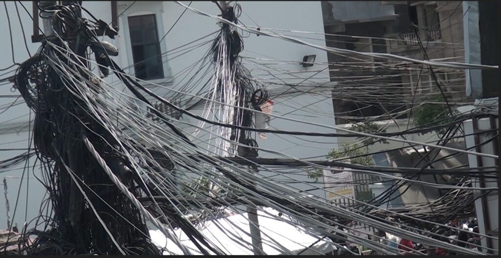 काठमाडौँ महानगरपालिकाभित्र अव्यवस्थितरूपमा राखिएका टेलिफोन, इन्टरनेटलगायतका तार व्यवस्थापनको काम धमाधमरूपमा भइरहेको छ ।