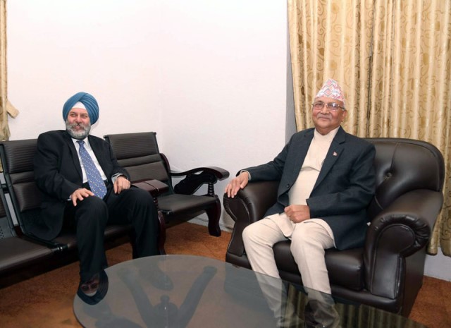 काठमाडौं । नेकपा एमालेका अध्यक्ष केपी शर्मा ओलीसँग भारतीय राजदूत मन्जिभसिंह पुरीले मंगलबार भेटवार्ता गरेका छन् । सिंहदरबारस्थित एमाले संसदीय दलको कार्यालयमा ओली र पुरीबीच भेटघाट भएको हो ।