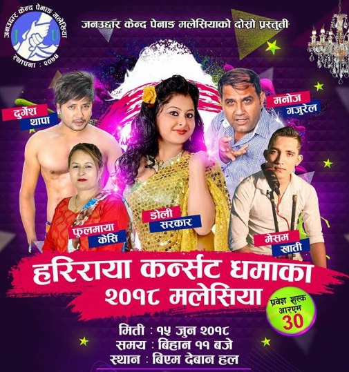 काठमाडौं १९ , मलेसियामा जेलमा परेका नेपालीलाई उद्धार गर्ने उद्धेस्यले पेनाङमा बृहत सांस्कृतिक कार्यक्रम हुने भएको छ । पेनाङ स्थित जनउद्धार केन्द्रको आयोजनामा असार १ गते विएम देवान हलमा सास्कृतिक कार्यक्रम हुन लागेको हो ।