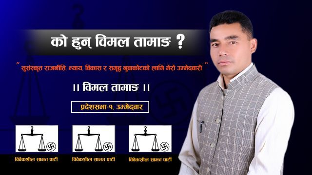 ११ कात्तिक, काठमाडौं : – आसन्न प्रतिनिधी सभा र प्रदेशसभा चुनावमा नुवाकोट जिल्लाबाट ५७ जनाले उम्मेदवारी दर्ता गराएका छन् । त्यसमध्ये, चर्चाको शिखरमा छन्, विमल तामाङ । विवेकशील साझा पार्टीले जिल्लामा पहिलो पल्ट तामाङलाई प्रदेश १, को “क” मा उम्मेदवारी बनाएपछि उनको चर्चा शिखरमा पुगेको हो । यो क्षेत्रबाट वाम गठवन्धनको तर्फबाट पुर्व कुषिराज्यमन्त्री राधिका तामाङ र नेपाली काग्रेसको तर्फबाट पूर्व जिल्ला उपसभापति महेन्द्र थिङको उम्मेदवारीपरेको छ । विमल तामाङ, नुवाकोट थप्रेकका वासिन्दा हुन् । स्नातक तह सम्मको अध्ययन पुरा गरेका तामाङले प्राथमिक शिक्षा स्थानिय विधालय श्री उदय जालपा देवी थप्रेकबाट पास गरेका थिए । ६ कक्षा देखि राजनीतिकमा लागेका तामाङले प्रमाणपत्र तहसम्म स्ववियुको विभिन्न तहमा रहेर काम गरे । आर्थिक अभावको कारण स्नातक तह अध्ययन गर्दा गदै विदेशिन वाध्य तामाङले केही समय राजनैतिक बाट टाढा समेत हुनुपर्यो । तर, विदेशमा भन्दा स्वदेशमा केही गर्नूपर्छ भन्ने सोचका साथ नेपाल फर्किएका तामाङको अहिले काठमाडौमा आफ्नै इन्टायर गोर्खाली सक्यूरिटी कम्पनी समेत छ । उनको कम्पनीमा अहिले २ सय भन्दा वढीले रोजगारी पाएका छन् । तालिम लिएका हजारौले विभिन्न देशमा रोजगारी समेत गरिरहेका छन् । सेकुरिटी कम्पनी वाहेक तामाङ आफै पनि सुरक्षा गार्ड सम्वन्धी ज्ञाता हुन् । तामाङले लेखेका थुपै पुस्तकहरु बजारमा छन् । त्यसमध्ये उनको लोकप्रिय पूस्तक हो, “द परफेक्ट सेक्युरिटी गार्ड नलेज” । यस वाहेक तामाङले तयार पारेको बैदेशिक रोजगारीमा सुरक्षा गार्डमा जाने कामदारका लागि पाठ्यक्रम धेरै इन्स्टिच्युटहरुले पढाउने समेत गरेका छन् । नेपालमा सुरक्षा गार्ड सम्वन्धी व्यवसायमा समेत रमाईरहेका तामाङले किन राजनीतिकमा आउनु पर्यो त, भन्ने हाम्रो जिज्ञासामा, उनले यस्तो जवाफ दिए । “म राजनितीमा सुसंस्कृती राजनीति, न्याय, विकास र समृद्धिका लागि आएको हुं”- मैले व्यवसायमा पैशा कमाउन सकेको छैन । तर, साथीभाई भने पक्कै कमाएको छु, ” । त्यही साथी भाईको सहयोग र हौसलाले आज मैले विवेकशील साझा पाटीको तर्फबाट उम्मेदवारी दिएको हुँ । “राजैनिक सेवा भन्दा, पैशा कमाउने मेलाको रुपमा परिणत हुदै गएको भन्दै यसलाई सुधार्न आफु राजनैतिक लागेको समेत तामाङ बताउछन् ” । हाल, विवेकशील साझा पार्टी, नुवाकोटको प्रचार प्रसार समितीका संयोजक समेत रहेका तामाङले चुनावमा आफुले जित्ने समेत विश्वास व्यक्त गरे ।
