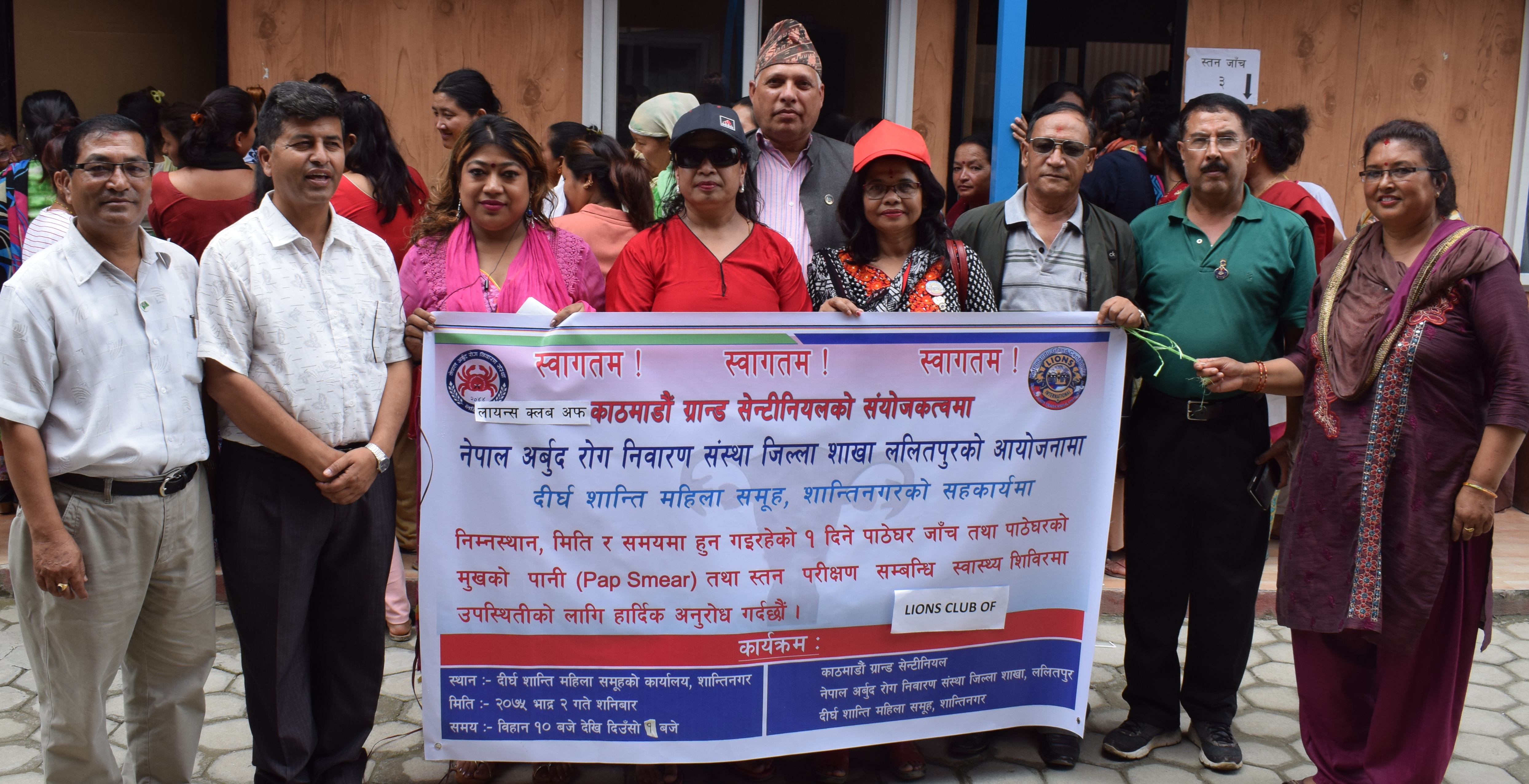 लायन्स क्लव अफ काठमाडौं ग्याण्ड सेन्टिनियलले केही समययता देखि स्वास्थ्य, शिक्षा, पुननिर्माणको क्षेत्रमा महत्वपुर्ण सहयोग गदै आएको छ । त्यसैको निरन्तरा स्वरुप शान्तिनगरमा शिविरको आयोजना गरिएको ग्याण्ड सेन्टिनियलका अध्यक्ष सर्जुवावा श्रेष्ठले बताउनुभयो । शिविरमा अर्वुद रोग निवारण संस्थाका सचिव तथा लायन्स केदार कार्की, लायन्स विनिता रिमाल लगायत समाजसेवाी, राजनैनिक दलका प्रतिनिधीहरुको उपस्थिती रहेको थियो ।