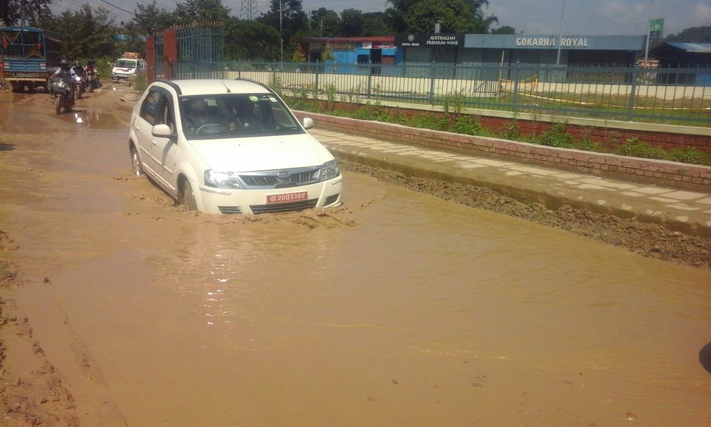 वरपरको सडक ठीकै छ, सहजै सवारी आवतजावत गर्न सक्छ बीचमा पुगेपछि पानीका दह देखिन्छ, खाडल कति गहिरो छ भनेर सवारी एकछिन रोकिएर मात्र जाने गर्छन् ।