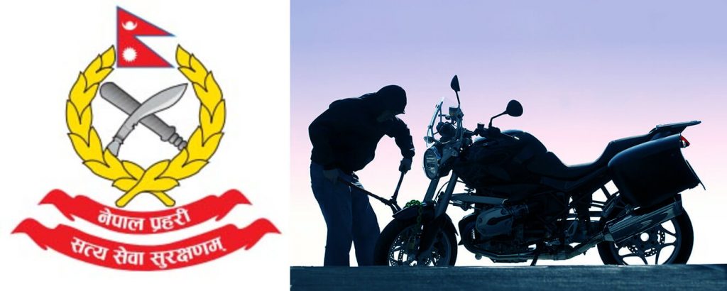 नेपाल प्रहरीले मोटरसाइकल चोरी गर्ने एक जनालाई पक्राउ गरेको छ । काठमाडौँ उपत्यका ट्राफिक प्रहरी कार्यालयबाट सादा पोशाकमा खटिएको ट्राफिक प्रहरी टोलीले हराएको मोटरसाइकलको वास्तविक नम्बर प्लेट परिवर्तन गरी चलाउने सिन्धुपाल्चोक पाँचपोखरीका २६ वर्षीय सन्तोष बन्जारालाई सोमबार पक्राउ गरेको हो ।