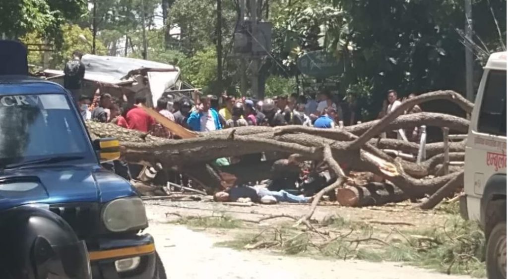 रूख ढलेर बस र स्कुटरलाई किच्दा तीनजनाको मृत्यु भएपछि भक्तपुर सल्लाघारीका जोखिमयुक्त २१ वटा रूख काटिएको छ । रूख ढलेर गत आइतबार बा२ख ३५८४ नंको बस र बा६१प ३९७८ नंको स्कुटरलाई थिचेपछि तीनजनाको मृत्यु र १२ जना घाइते भएका थिए ।