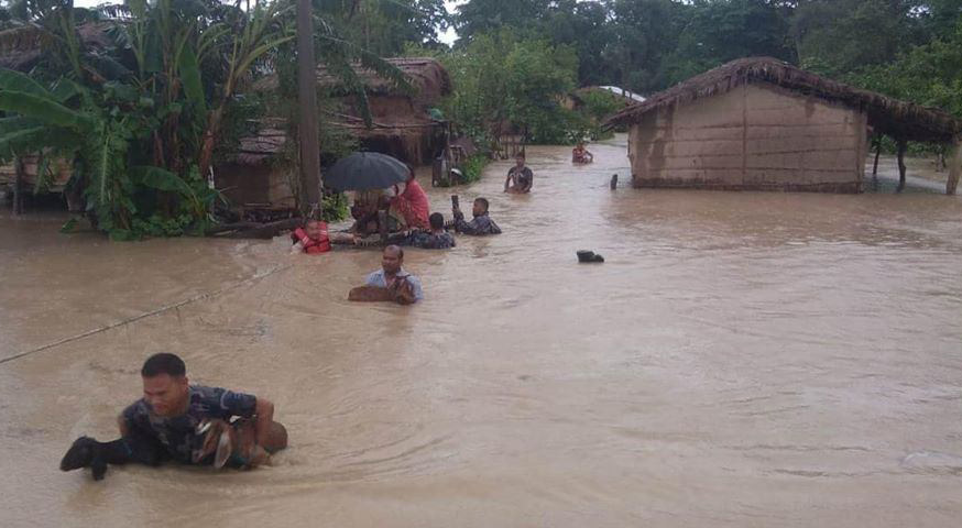 कैलालीमा बुधबार रातिदेखिको अविरल वर्षापछि बाढीको खतरा बढेको छ । कर्णाली नदीमा पानीले खतराको तह पार गरेको छ । जल मापन केन्द्र चिसापानीको गेज रिडर पार्वती गुरुङका अनुसार कर्णाली नदीमा पानीको सतह बढ्दै गएकाले तटीय क्षेत्रमा बाढीको जोखिम बढेको छ । वर्षा निरन्तर हुनुका साथै चिसापानीमा पानीको सतह बढ्दै गएकाले जोखिम क्षेत्रका नागरिकलाई सुरक्षित स्थानमा सर्न अपिलसमेत गरिएको छ । कर्णालीमा पानीको सतह १०.८ पुगेमा खतरा तह पार भएको मानिन्छ ।